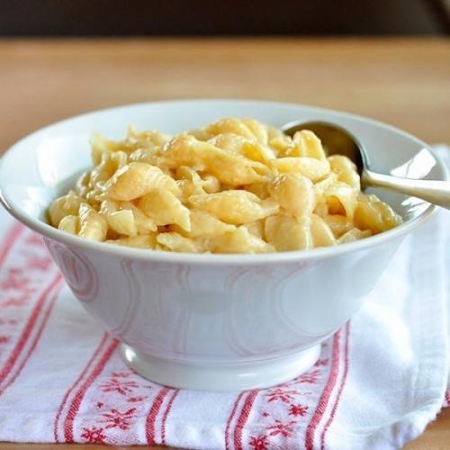 В большой миске смешиваем пасту с 1/2 сырного соуса. Перемешать, чтобы макароны были равномерно покрыты соусом. Добавить вторую половину соуса и еще раз все перемешать. Когда такое простое блюдо готовим дома с фото рецептом, то его приготовить очень просто. Приятного аппетита!