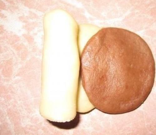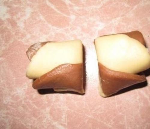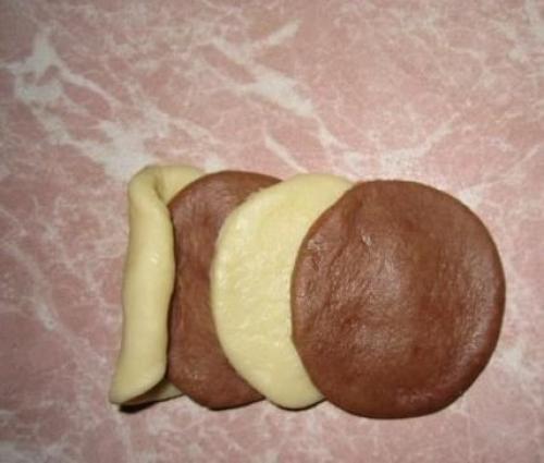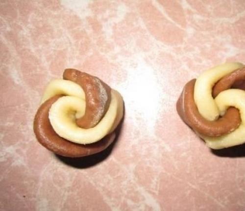 4. свернуть рулетом сложенные вместе кружочки. Разрезать рулон из кружочков посередине. Получается два печенья - цветочка.