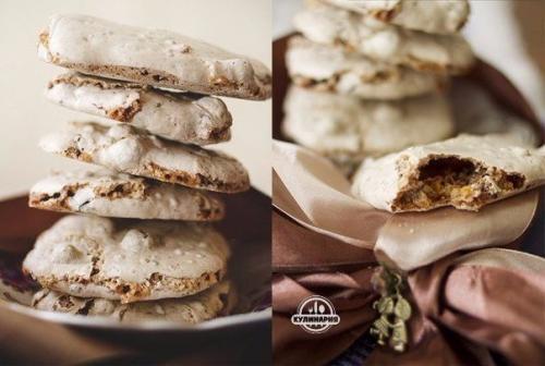 5. смешайте белковую пену с начинкой. Выкладывайте комочки ложкой на противень (застеленный пергаментом, фольгой или силиконовым ковриком.