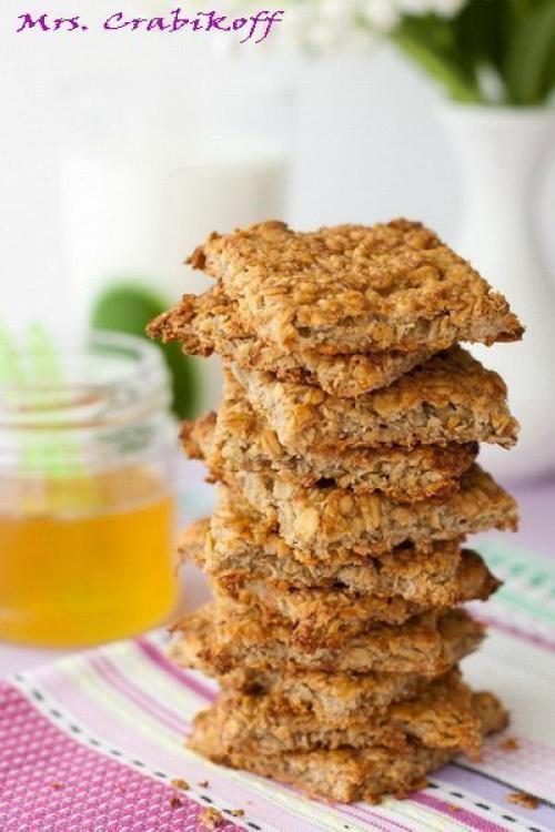 2. выложить тесто на смазанную сливочным маслом бумагу для выпечки слоем в 1-1, 5 сантиметра. Выпекать при 180 градусах, до готовности, 20-30 минут. Овсяный корж достать из духовки, разрезать произвольными кусочками и снова поставить на 5 минут в духовку. Приятного аппетита!