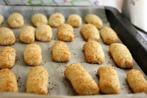- Сформировать тесто в "Колбаску" и порезать на кружки.