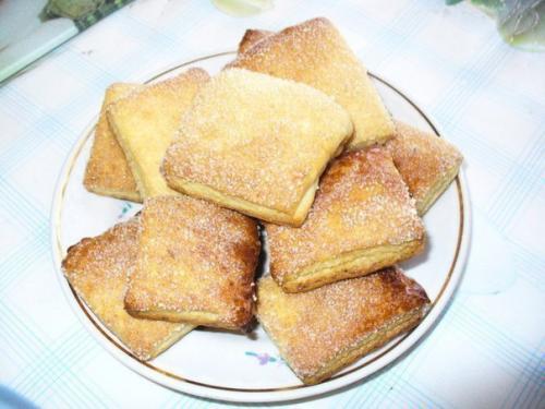 Разрезать на квадратики, каждый обмакнуть в сахар. Выпекать в нагретой до 200 градусов духовке 15-20 минут. Приятного аппетита!