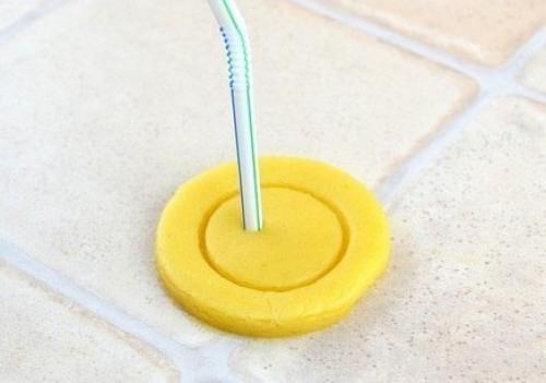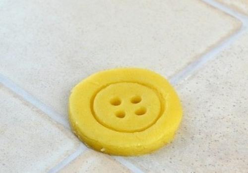Затем на каждом кружке сделать вмятину, но не прорезая до конца. Затем по центру сделать два или четыре сквозных отверстия, как в пуговице.