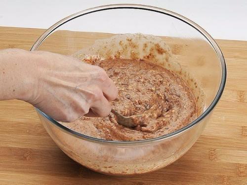 Готовый фарш положить в миску, добавить к нему молоко, соду, яйца, муку, соль и перец. Размешать до однородной массы.