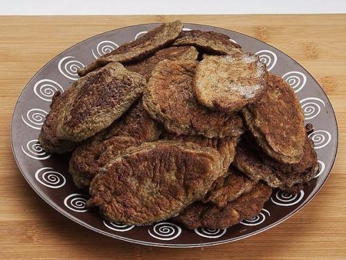 - Говяжья или свиная печень - 500 г, - 1 чайная ложка соды (гашёной уксусом), - чеснок - 3-4 зубчика, - сметана, - молоко - 50 г, - петрушка или укроп, - соль, перец по вкусу, - оливковое масло.