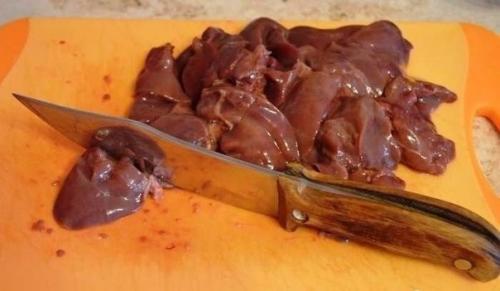 6. промываем печень под проточной водой, даем стечь жидкости. После чего обрезаем прожилки.