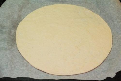 Тесто мы до желаемых размеров раскатываем. Я раскатываю, а потом прикладываю тарелку, на которой будет лежать готовая пицца, и обрезаю ножом для пиццы. В результате получается вот такой ровный край.