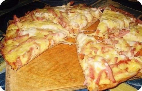 5. сковороду сразу накрыть крышкой, как только сыр расплавился, пицца готова.