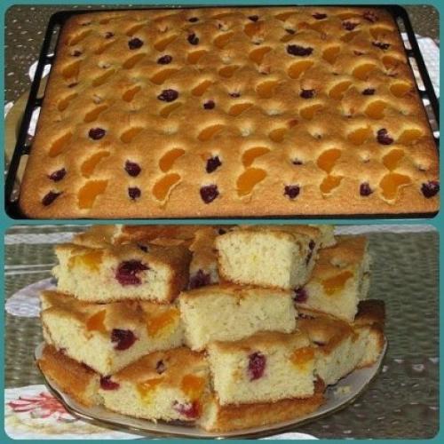 4. сверху выложить вишню по всей поверхности и дольки мандарина.