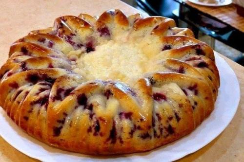 8. вынуть готовый пирог, немного остудить и перевернуть на тарелку. 9. можно присыпать сахарной пудрой. Пирог готов.
