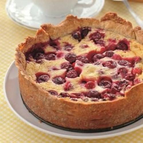 6. аккуратно вылейте на тесто сливочную заливку. Сверху выложите ягоды (не размораживая. Выпекайте при 180\xB0с 45-50 мин. Остудите на решетке. Подавайте пирог полностью остывшим. Приятного аппетита!