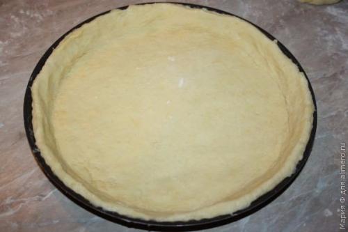 8. готовое тесто раскатываем и выкладываем в нашу форму для пирога (или противень.