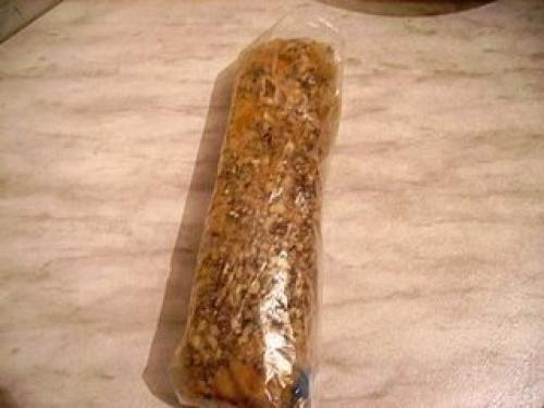 Из получившейся массы сформируйте продолговатый батон. Обваляйте его в ореховой крошке.