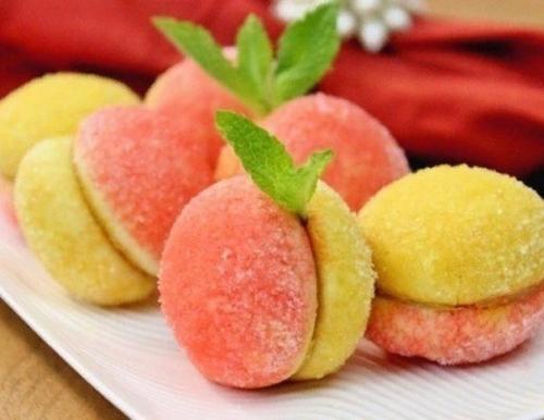 17. когда половинки "Персиков" схватились можно приступать к декору. 18. Мы обмакиваем "Персик" на 2/3 в морковный сок и дайте ему немного стечь, затем неокрашенную часть в свекольный сок и сразу обвалять в сахаре.