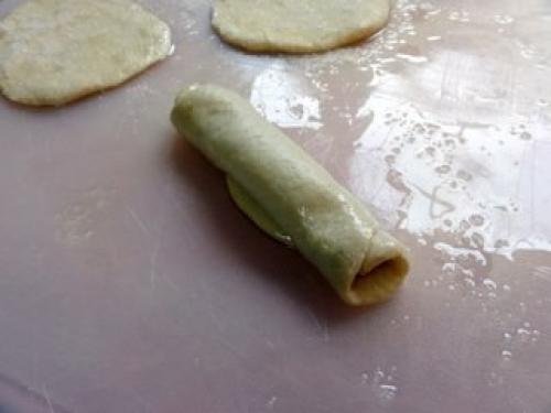 Каждую лепешку сверните трубочкой, сахаром внутрь.