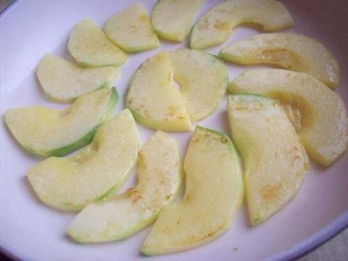 2. кабачок нарезаем небольшими ломтиками. Обжариваем слегка. Моцареллу нарезаем ломтиками. Пармезан натираем в тёрку. Перец режем небольшими кусочками.