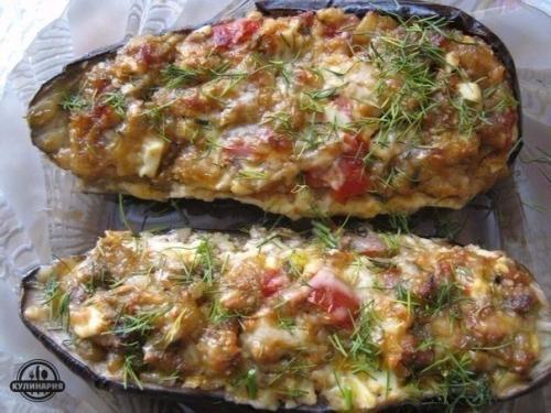 Нарезаем баклажаны (наискосок), делаем фарш, как на котлеты.