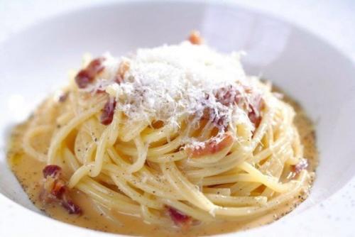 2. пасту опустите в кипящую воду и варите 10 минут. 3. яйца слегка взбейте с тёртым пекорино и пармезаном. 4. на раскалённой сковороде обжарьте панчету, нарезанную тонкой соломкой. Яйца. 5. в полученную массу добавьте отваренную пасту, доведите до нужной консистенции. 6. тщательно перемешайте. 7. декорируйте тёртым пармезаном и свежемолотым чёрным перцем. 8. карбонара готова.