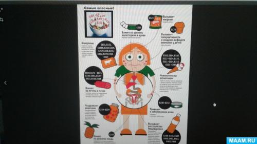 Еще раз рассмотрели табличку из интернета с вредными Е- добавками и их влиянием на организм человека.