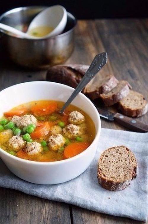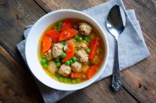 8. теперь всё просто - иногда снимайте пенку ложкой с поверхности супа. Периодически ножом прокалывайте морковь. Как только она стала достаточно мягкой для вас, засыпайте горошек.