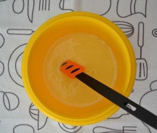 3. яйцо взбить с солью и сахаром, добавить масло. Еще раз хорошо размешать.