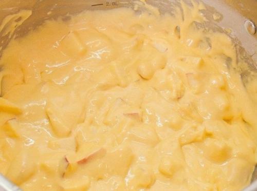 4. добавить в тесто яблоки, нарезанные кубиками.