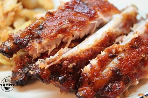 9. переводим духовку в положение "Гриль" и ставим максимальную температуру. Обмазываем ребрышки соусом, мажем обильно, не стесняясь. 10. Отправляем в духовку, на верхнюю полку, под "Гриль". Теперь фольгой уже не закрываем, конечно. С каждой стороны нужно подержать ребрышки минут по 10, до того момента, пока соус не начнет слегка обугливаться. В результате получаем лучшие в мире вкуснейшие свиные ребрышки барбекю. Мясо должно практически отваливаться с кости и таять во рту. Когда все готово, остается налить холодного пива и насладиться шикарным ужином. Приятного аппетита!