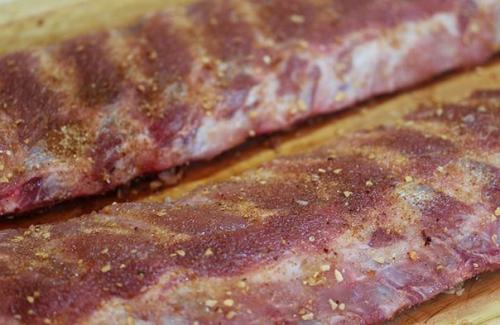 2. берем ребрышки и смазываем их жидким дымом. Ребрышки мне попались очень хорошие, просто высший класс: