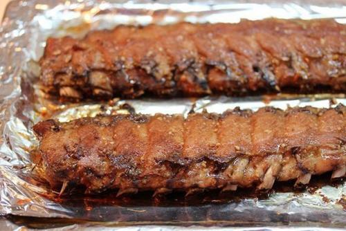 Тправляем в духовку, на верхнюю полку, под "Гриль". Теперь фольгой уже не закрываем, конечно. С каждой стороны нужно подержать ребрышки минут по 10, до того момента, пока соус не начнет слегка обугливаться. В результате получаем лучшие в мире вкуснейшие свиные ребрышки барбекю. Мясо должно практически отваливаться с кости и таять во рту. Когда все готово, остается налить холодного пива и насладиться шикарным ужином. Приятного аппетита!