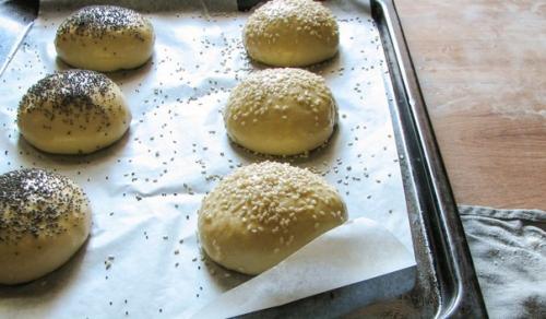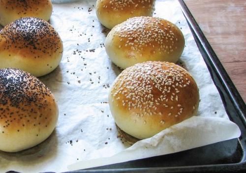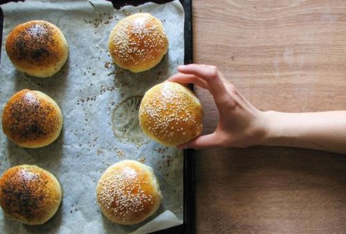 Замешиваем тесто 5-7 минут и делим его на порции. Даем домашним булочкам для гамбургеров подойти 10 минут в тепле, смазываем взбитым яйцом и ставим в разогретую до 200 градусов духовку на 12-14 минут. Приятного аппетита!