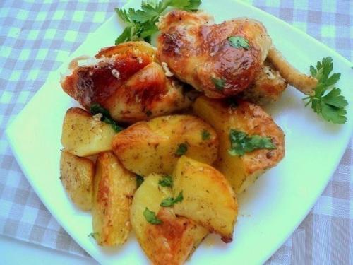 Всем любителям курочки и картошки этот рецепт придётся по душе, ведь куроца, запеченная по этому рецепту, получается невероятно вкусной, нежной с аппетитной румяной корочкой!