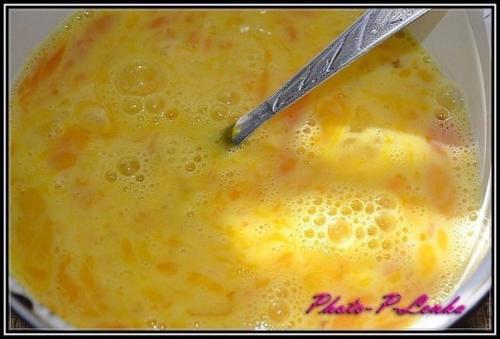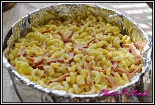 3. смешать колбасу с макаронами, влить взбитые яйца, и переместить массу в форму для запекания.