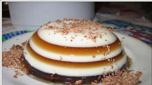 Порошок желатина залить холодной кипяченой водой и вымачивать до размягчения 30 мин. Затем приготовить молочное желе, для чего вскипятить молоко, добавить в него сахарный песок (1, 5 столовой ложки), дать вскипеть и, помешивая, растворить половину вымоченного и отжатого желатина. В охлажденные металлические формочки или стаканы налить приготовленное молочное желе слоем около 5 см, сильно охладить и, когда оно застынет, налить на него слой полужидкого ягодного желе, потом опять молочного и т. д. ягодное желе приготовить следующим образом. Из клюквы (или других ягод) отжать сок, процедить через салфетку или частое сито. Массу, полученную после отжима сока, отварить, прибавить сахарный песок (2, 5 столовой ложки), вскипятить, снять пену. Затем отвар процедить, прибавить половину замоченного и отжатого желатина, размешать, дать немного остыть и влить ягодный сок.