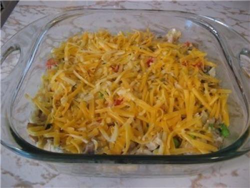 4. соединить рис, мясо, грибы и овощи, перемешать.