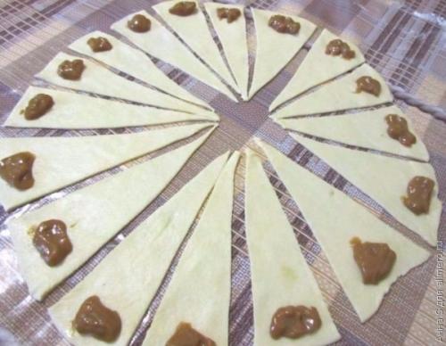 8. на каждый треугольник ложечкой выкладываем вареную сгущенку.