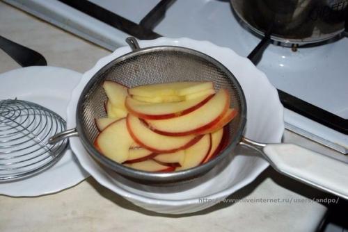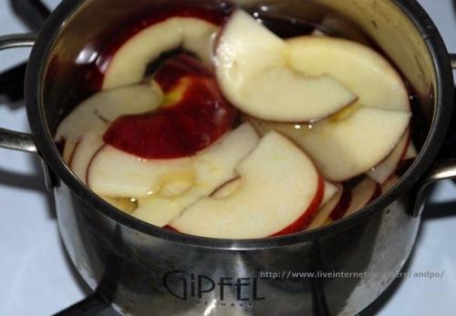 2. Отвариваем нарезанные яблоки в сладком сиропе (предварительно сироп нужно сварить из 500 мл воды и 1 стакана сахара).