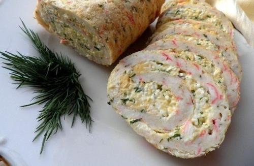 Рулет из крабовых палочек.