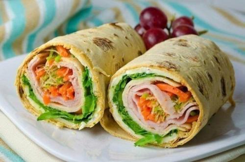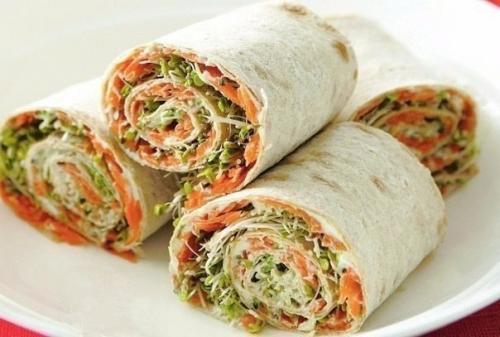 8 с помощью пленки аккуратно свернуть лаваш в рулет.
