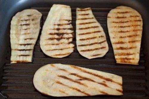 2. разогреваем сковороду с 1 ст. л. растительного масла. Кладем баклажаны и обжариваем в 2 партии по 2 минуты с каждой стороны, до готовности.