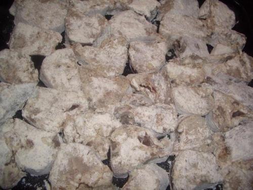 3. в панировке обвалять кусочки рыбы и выложить на противень с бортиками.