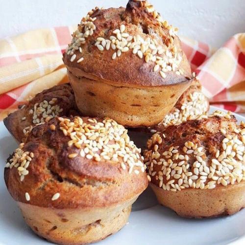 Все тщательно перемешать, кроме кунжута, разлить по формочкам для кексов, посыпать кунжутом и отправить в духовку при 180 с примерно 25 минут. Готово! Приятного аппетита!