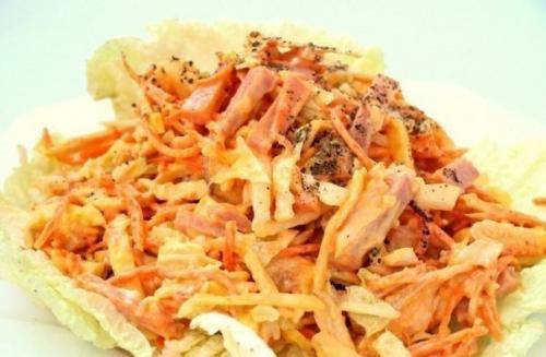 Салат выложить на листья пекинской капусты и подать к столу. Приятного аппетита!