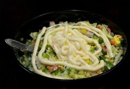 Салат из крабовых палочек с пекинской капустой.