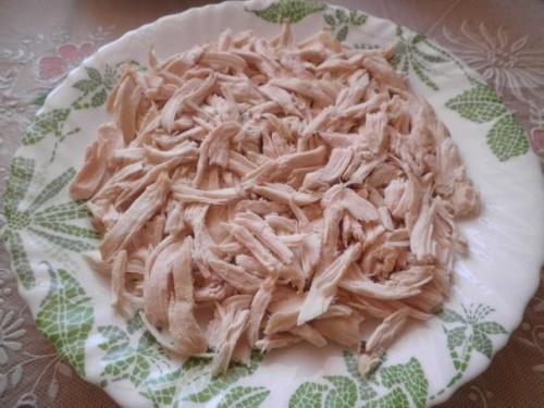 - 350 гр вареной куриной грудки.