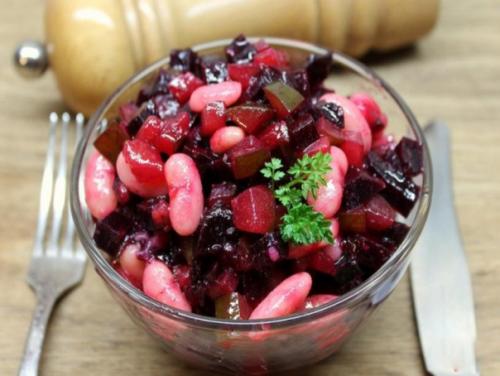 Салат из свеклы, фасоли и солёных огурцов.