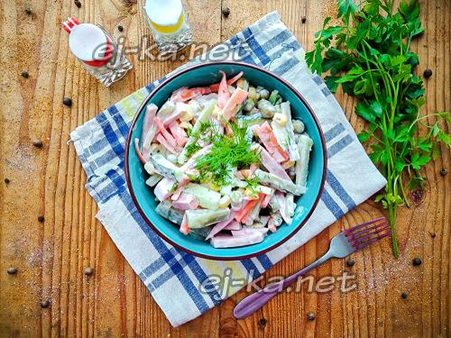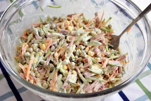 Салат, который не нужно варить, можно назвать быстрым салатом. Быстрые рецепты салатов ценятся за то, что на их противление нужно минимум времени, так как продукты не надо варить – все порезал и готово! Такой салат отлично подойдет на тот случай, если к вам неожиданно нагрянули гости. Большинство продуктов для этого блюда практически всегда есть в холодильнике.Салаты на скорую руку часто богаты овощами, а они в свою очередь выглядят очень гармонично вместе. Салат, который не надо варить получается полезным, сытным и очень вкусным блюдом. Предлагаем пошаговый рецепт с фото.