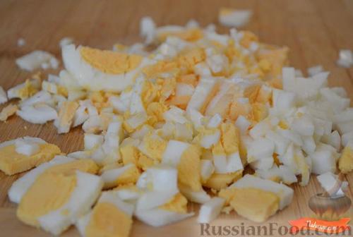 Яйца мелко нарезать.