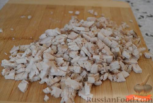 Куриное Филе мелко нарезать.