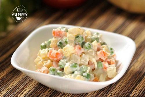 Салат оливье со слабосолёной сёмгой.