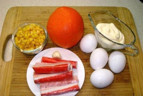 1. подготовить продукты. Крабовые палочки разморозить. Яйца вкрутую сварить.
